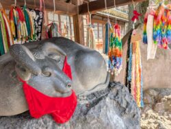 コンパクトながらも多数の花を見ることができる綺麗な神社。早春に訪れれば、ミモザとサクラが重なる姿を拝むことができます。技芸である「力持」や、落語「元犬」に関連する見所もあります!