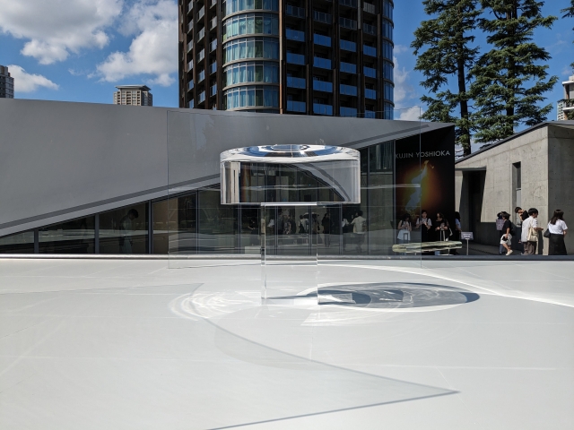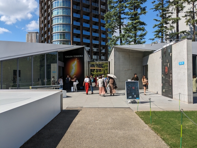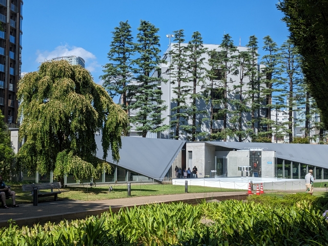 ミッドタウンの建物内にあるサントリー美術館とは異なり、屋外に別棟として建っています。都内では珍しい、非常に平面的な構造。外観だけ見ると、とても小さな施設に見えます。