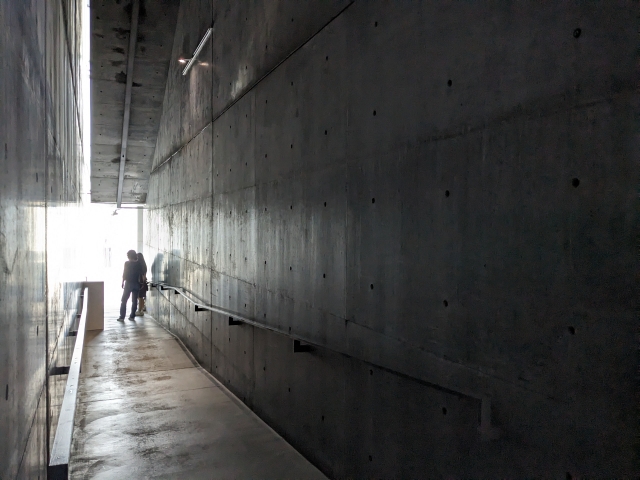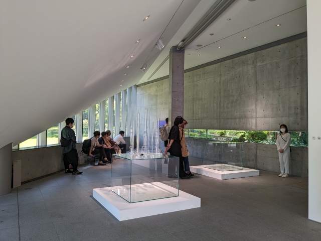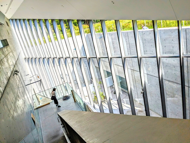 建築を担当したのは世界的建築家の安藤忠雄。コンクリート仕立ての館内は、彼らしさが詰まっています。展示室が地下に作られているのも、緑地の景観を配慮してのことであるそうです。