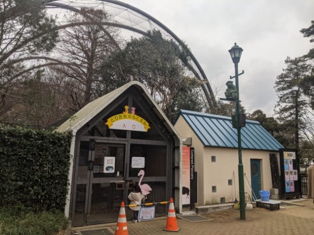シロトキやオオフラミンゴなど様々な鳥が放し飼いにされた大きな空間、フライングケージもあります。ただし。2022年1月現在は新型コロナウイルス感染拡大防止のため閉鎖中でした。