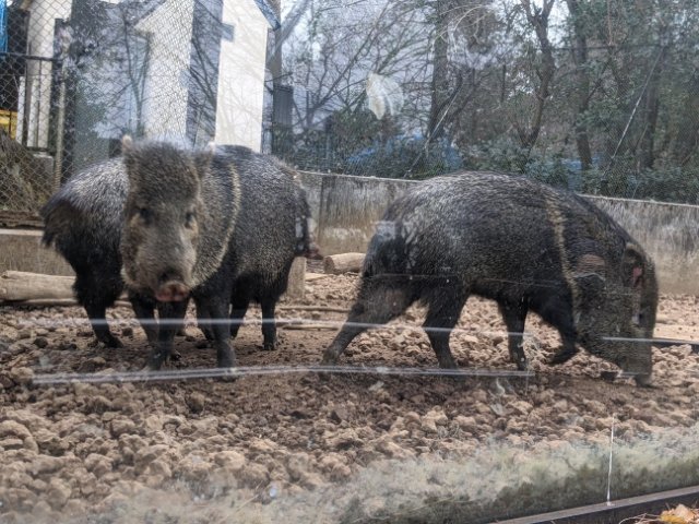 ひとまわり小さなイノシシといった見た目のこちらの生き物はクビワペッカリー。北アメリカ南部から南アメリカに暮らしており、首輪のような白い模様があるのがその名前の由来となっています。