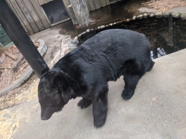 さらに立派なクマまでいます!こちらはおなじみのツキノワグマ。本州や四国の山に暮らす、比較的なじみ深い種類の熊です。意外にも植物が好きなベジタリアンだそう。