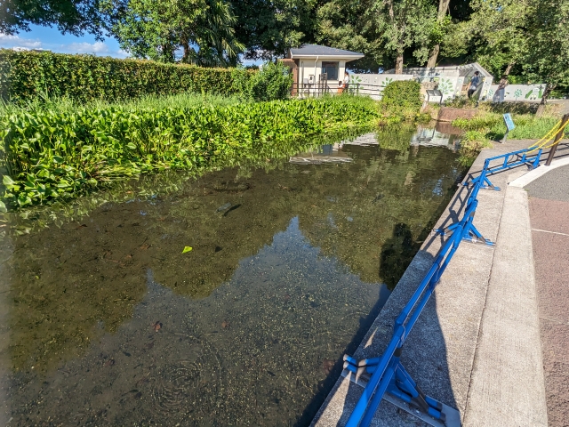 さらにもうひとつの池、一見するとコイやフナやメダカが泳いでいるかにみえますが、実は全然違うラインナップ。