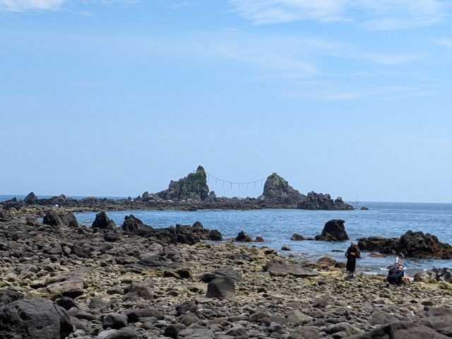 三ツ石海岸を後にして、戻ってきたのは琴ヶ浜。三ツ石海岸よりも多くの人でにぎわうスポット。お子様連れやSUPや釣りをしている人などもおり、幅広いニーズに応える海です。