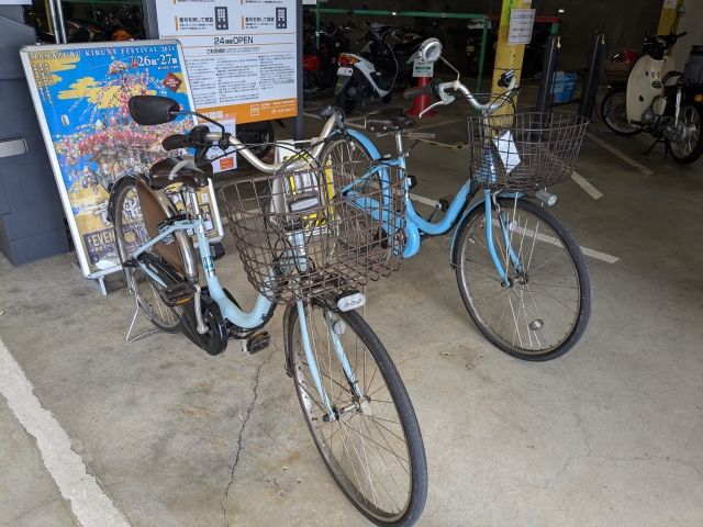 真鶴駅前の観光協会にて、電動アシスト付き自転車のレンタルがあります。料金は3時間1,000円、1日1,500円。レンタル時間は10:00〜16:00。