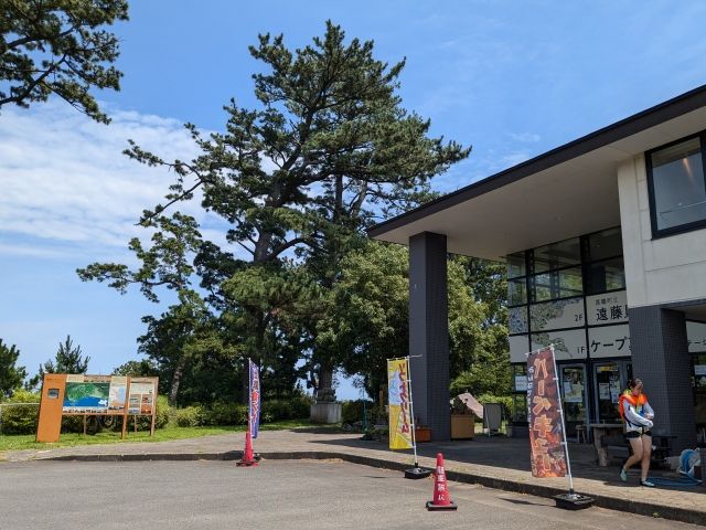 しばらく走ると、三ツ石海岸の入口であるケープ真鶴が見えてきました。お土産の販売や貝類博物館、バーベキューテラスを備えた施設。自販機も多数あり飲み物補給もここで・・・と言いたいところですが、水&お茶&スポーツドリンクという、夏場に一気飲みしたくなるタイプはすべて品切れ。炭酸とコーヒーしか残っていませんでした。