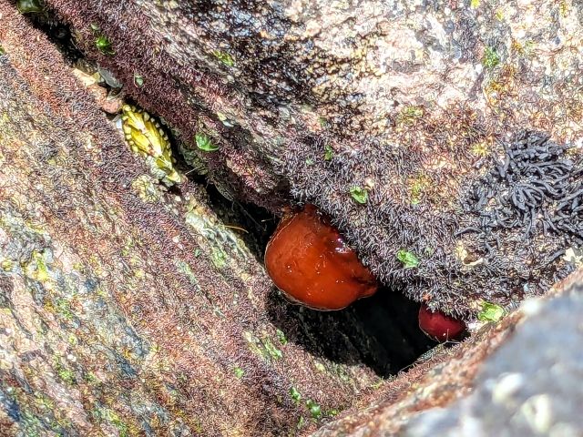 真っ赤な姿がその名の通り梅干しみたいなイソギンチャク。神奈川県の天然記念物にも指定されています。潮が引いた岩場の隙間にも残っているため、海に潜らなくても出会うことができます。