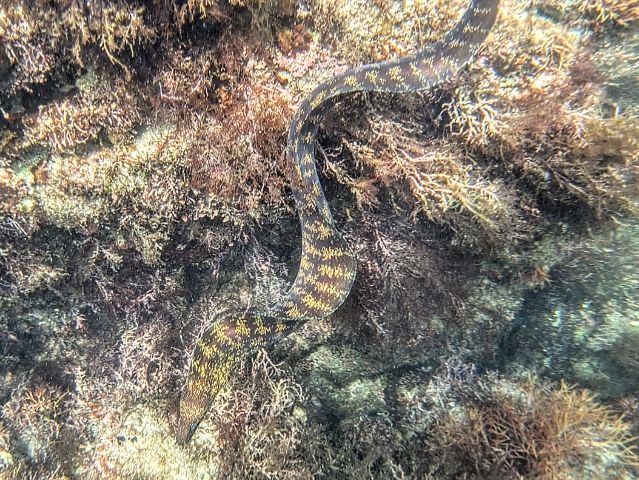 見れたらラッキーですが、ちょっとゾクッとするのがこちら。うねうねと海底を張っておりますが、すぐに岩場に隠れてしまいました。