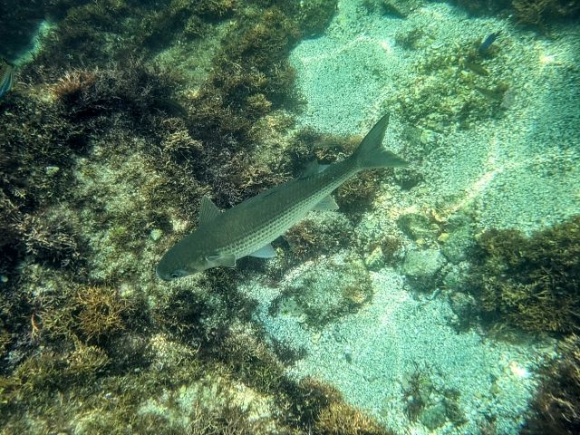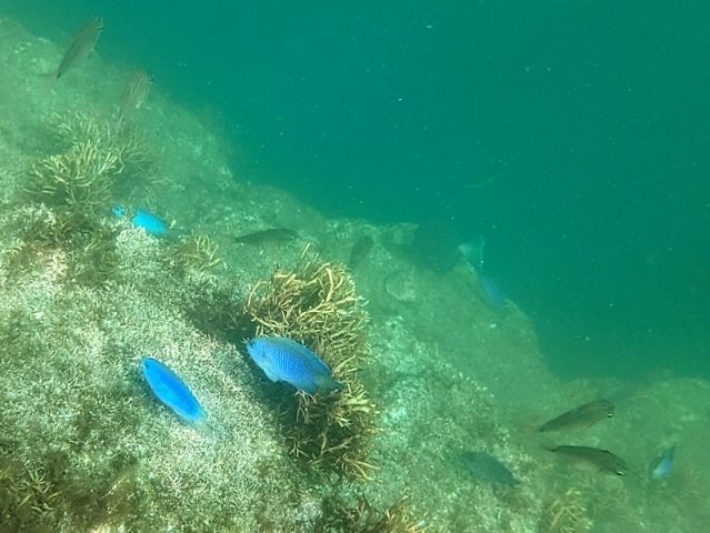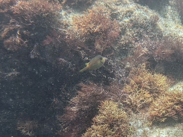 写真は撮れなかったのですが、大きな姿のブダイや、うねうねとした模様が印象的なキンチャクダイなども見かけました。