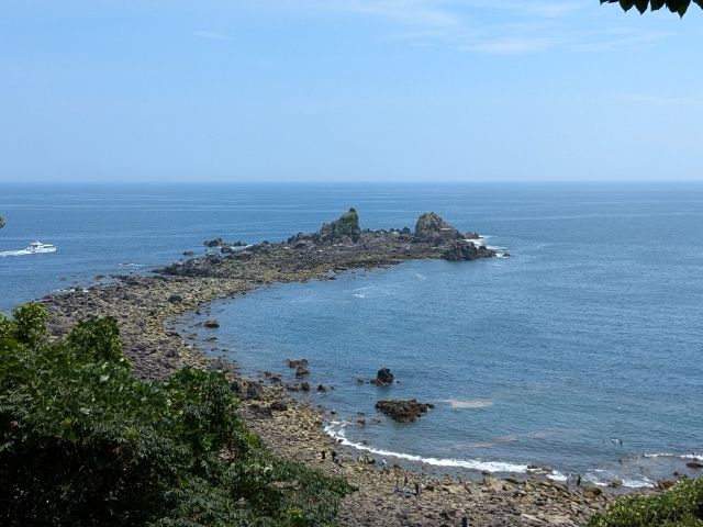 ほぼ下り坂であっという間に琴ヶ浜に到着!干潮をちょうど過ぎたくらいの時刻であるため、生き物は少なそう。そして、シャワーがあるのが琴ヶ浜のみなので「三ツ石→琴ヶ浜」の順で巡った方が良さそう、ということで先に三ツ石海岸へ向かうことにしました。