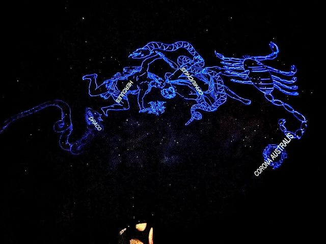 「ロマンティックスカイウォッチ」は夏の星座を映した、こちらも同じく15分の作品。まずは日本の夏の情景に始り、ジャズのBGMとともに星の紹介へ。はくちょう座、天の川、さそり座などの夏の星座が次々と映し出されます。最後には、夏らしく花火の演出も!きっと訪れる季節に合わせた内容なのでしょうね。