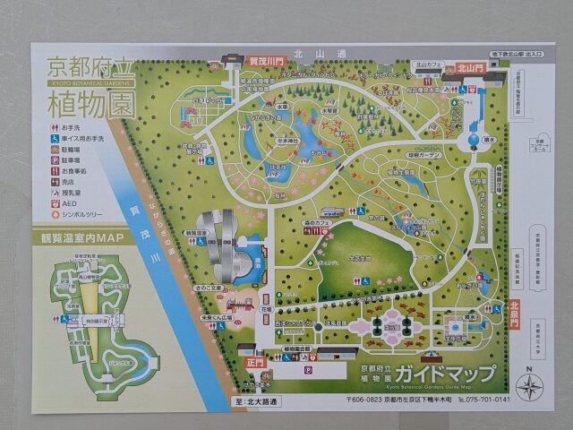 園内への入り口は南側にある「正門」、東側にある「北泉門」、北側にある「北山門」と「賀茂川門」の4ヶ所。交通機関で向かう場合は地下鉄烏丸線の北山駅の目の前である「北山門」がメジャーな入園口。車の場合は駐車場のある「正門」が良さそうです。