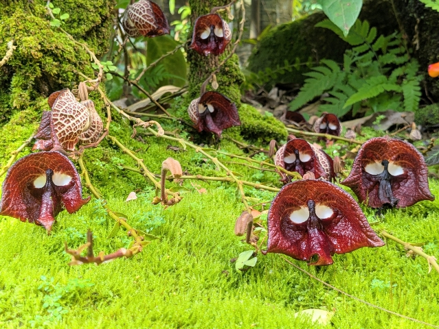ダース・ベイダーみたいな姿が人気のアリストロキア・サルヴァドレンシス。地面に並ぶ様子がかわいらしいです。