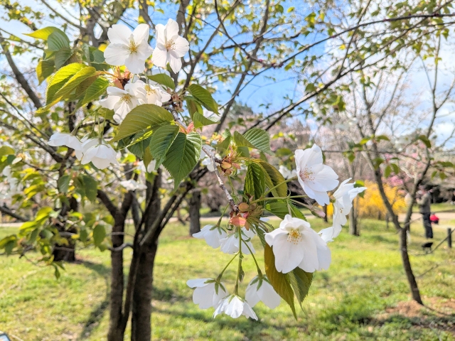 3月下旬に訪問したところ、ソメイヨシノはまだでしたが「三春滝桜」「河津桜」「大島桜」が見ごろを迎えていました。