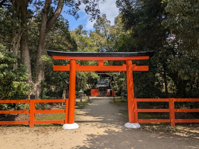 そんな森の中には、上賀茂神社の境外末社である半木神社も鎮座しています。西陣織等絹織物が盛んな地域であったため、織物業の神様として信仰されているそう。
