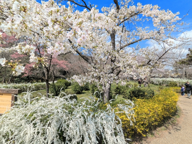 桜林もあり、180品種・500本という多数のサクラを見ることができます。それぞれ開花時期が異なるため、長い期間楽しめるのもポイント。