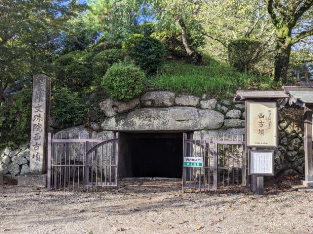 さらに文殊院の境内にはもう一基、東古墳と呼ばれる古墳もあります。こちらは中に入ることはできないため、外から眺めるタイプ。