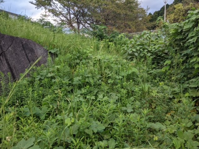 境界線がはっきりとわかりませんが、おそらく私有地の中。民家のテレビ音が聞こえる中、不審者と思われないかヒヤヒヤ。
