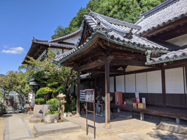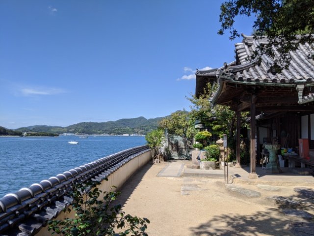海の近くというより、海に面して建つお寺です。瓦の乗った背の低い塀に囲まれていますが、その向こうはすぐ海。その気になればいつでも海に飛び込めるほど海が近いです。