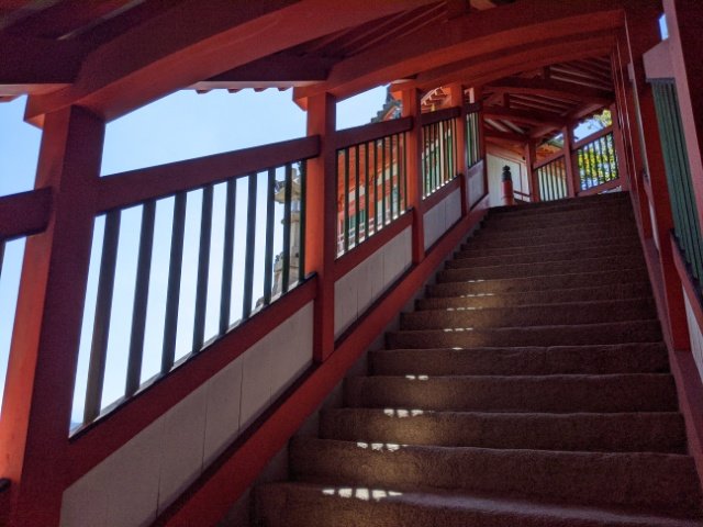 観音堂へは境内から延びる朱色の階段を登っていきます。少々急ですが、段数はそれほど多くありません。
