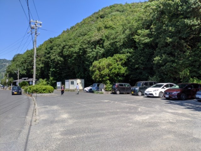駐車場は観音堂より少し手前に2ヶ所あります。「観音堂はまだ先だよね?」と思いきや、この先は車両通行止めなので、潔く停めてしまうのが良いです。台数が少ないため満車のことも多いですが、そんなに長く滞在する場所ではないため回転率は悪くないです。