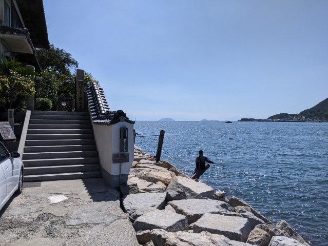 阿伏兎観音までは駐車場より徒歩5分ほど。海を間近に感じるシーサイドロードなので、歩いていてとても気持ち良いです。