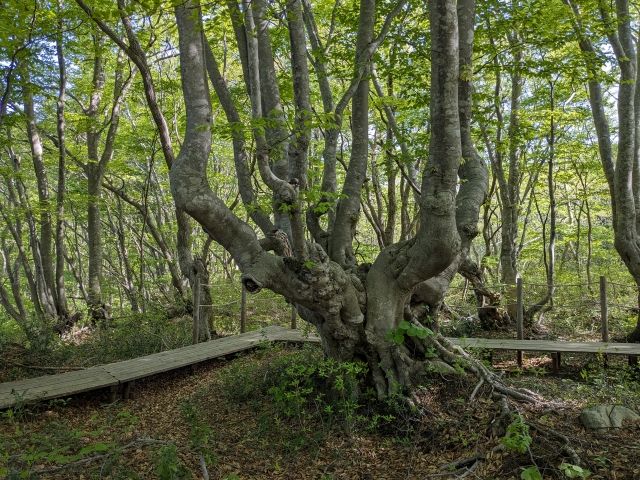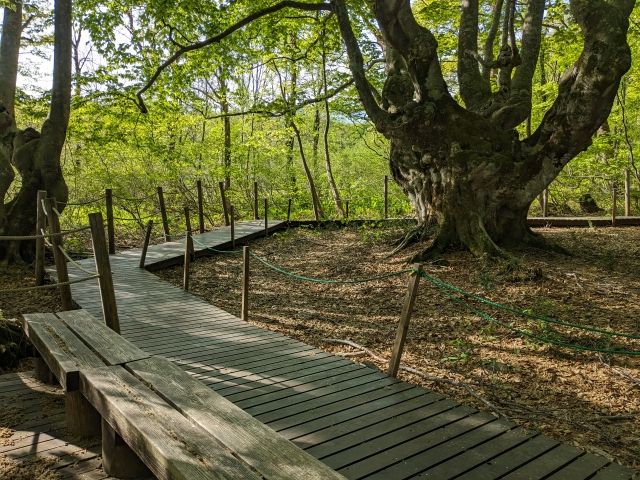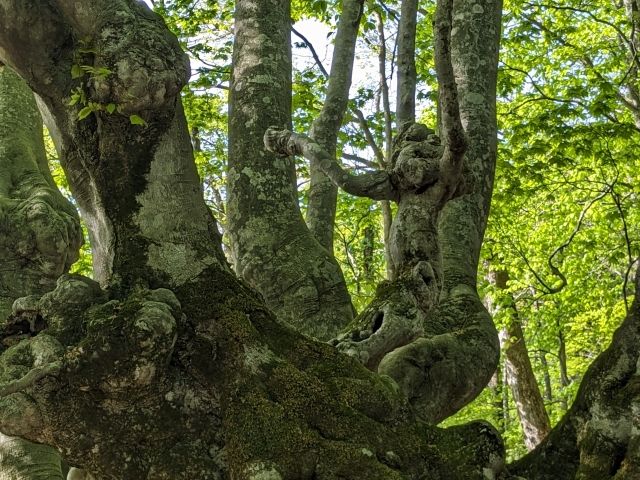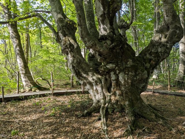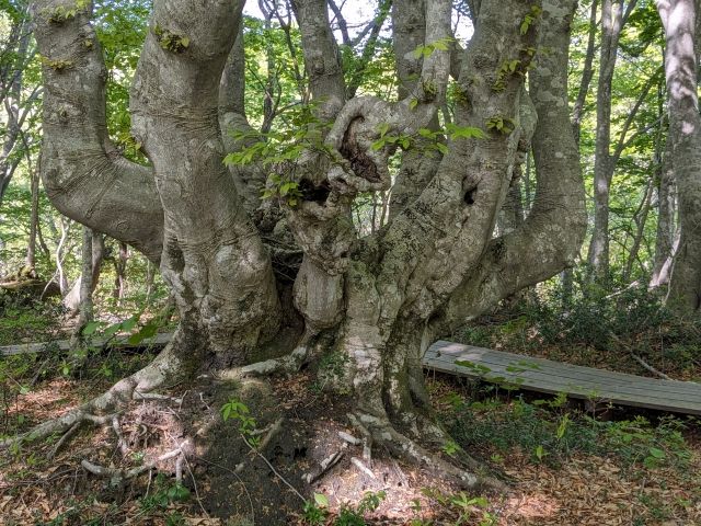 存在感抜群なブナの木。幹から立ち上がる枝がロウソク立てのようなことから「燭台ブナ」と名付けられています。「ニンフの腰掛け」というファンタジックな名称もあるそうです。