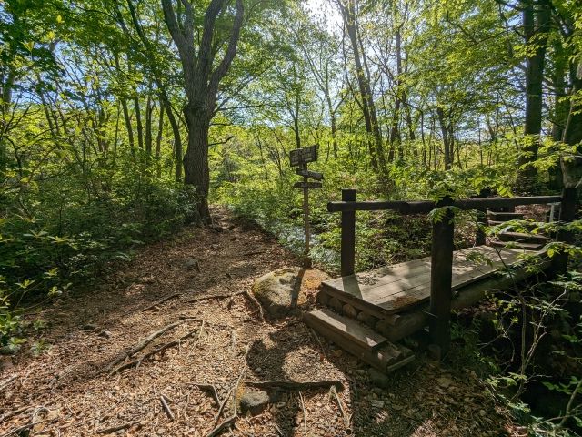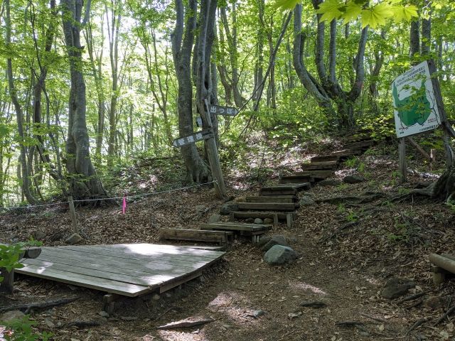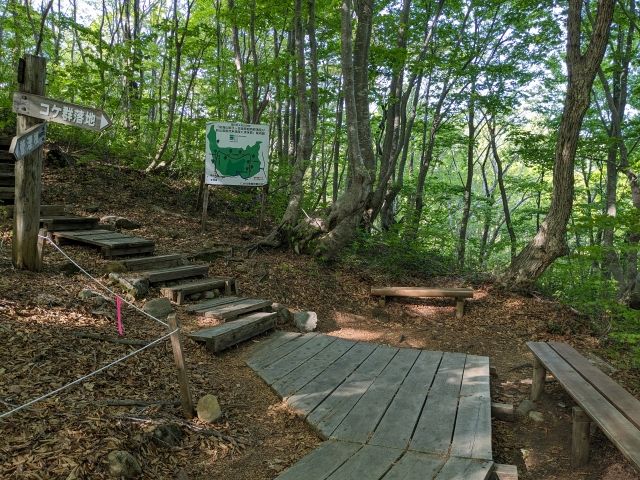 「あがりこ大王」の分岐点に到着。ここまで駐車場から約20分ほど。前述の通り、「あがりこ大王」は、ここを左に進んで往復してくるルートになります。