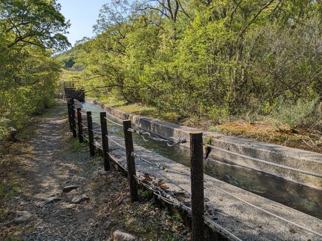 長い岩場を抜けると、びっくりするくらい歩きやすい道に。水路の水はめっちゃキレイです。