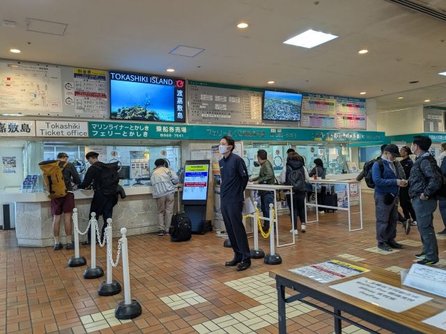 乗船券売り場は、他の島へ行くフェリーと同じフロア。窓口が多数並んでいますので、間違えないようにご注意を。