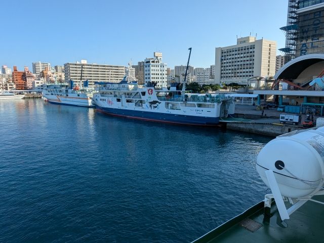 粟国島へのアクセスで一般的なのはフェリー。ゆいレールの美栄橋駅から徒歩10分ほどの泊港(とまりん)が乗船場となっています。