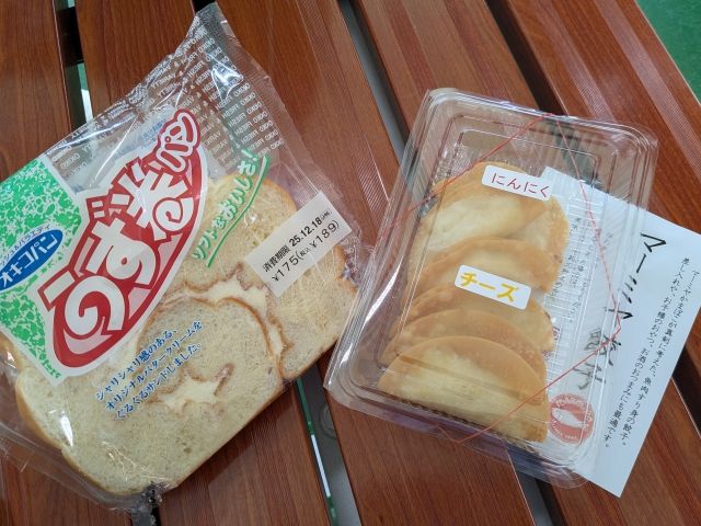 朝ごはんはおなじみの「うず巻パン」と、港で買ったマーミヤかまぼこのすり身入り「マーミヤ餃子」。どっちもめっちゃおいしいです!