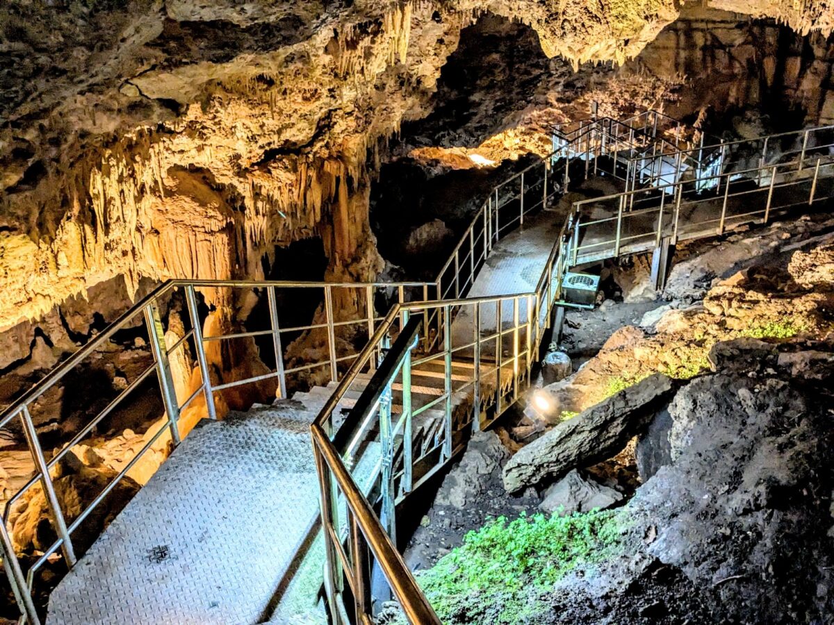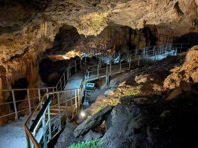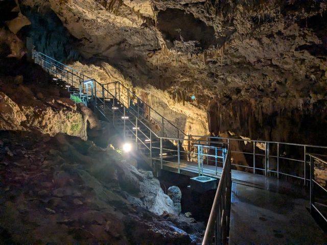 洞内は歩道が整備されており、ライトアップもされています。多少のアップダウンはありますが、とっても快適に洞窟探検することができます。