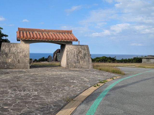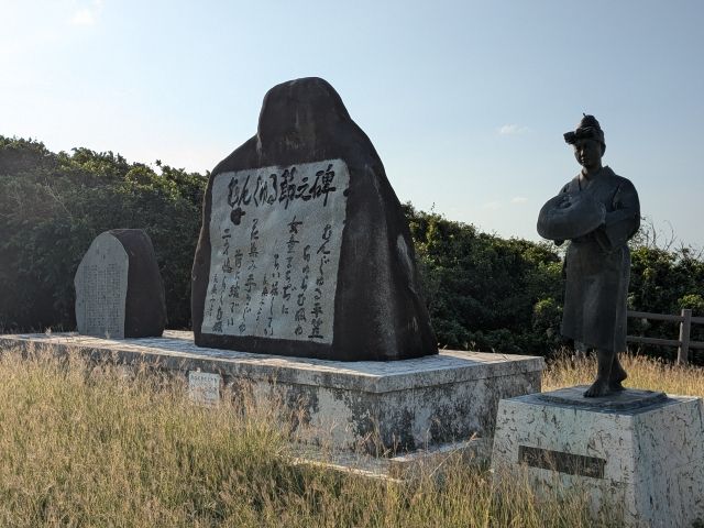 そのそばにあるのは、平成10年(1998年)に建立されたむんじゅる節之碑。沖縄に伝わる琉球民謡「むんじゅる節」がこの粟国島発祥であることを記念する石碑です。ちなみに「むんじゅる=麦わら」のことを意味しています。