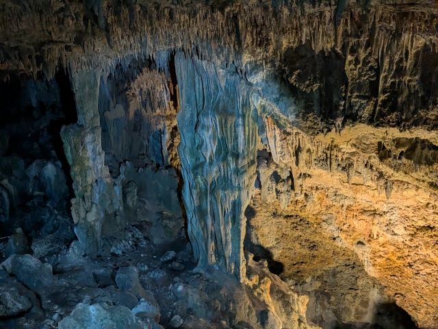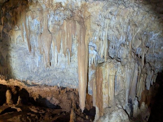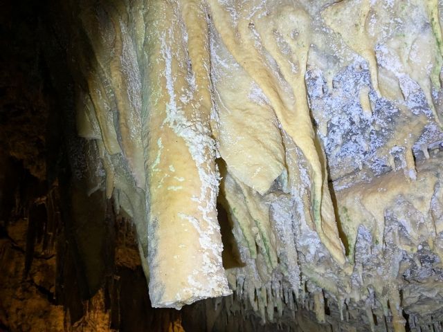 現在は鍾乳石がたっぷりな鍾乳洞。洞窟の規模はけっこう大きく、スケール感に圧倒されます。