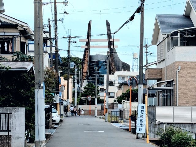 住宅街に浮かぶ巨船
