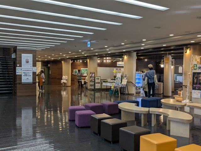 2階に「世界遺産ガイダンス・歴史展示コーナー」があるので、観光で訪れた場合はそちらを見るのがおすすめ。3階は生涯学習センターや公民館となっており、4階は屋内多目的広場。人工芝でゲートボールを楽しむおじいさんたちがいました。