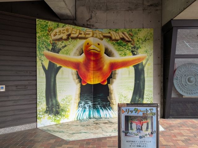 津堂城山古墳より出土した水鳥形埴輪のトリックアート。翼を広げて迫り来る姿と無垢な表情がインパクト抜群です!!