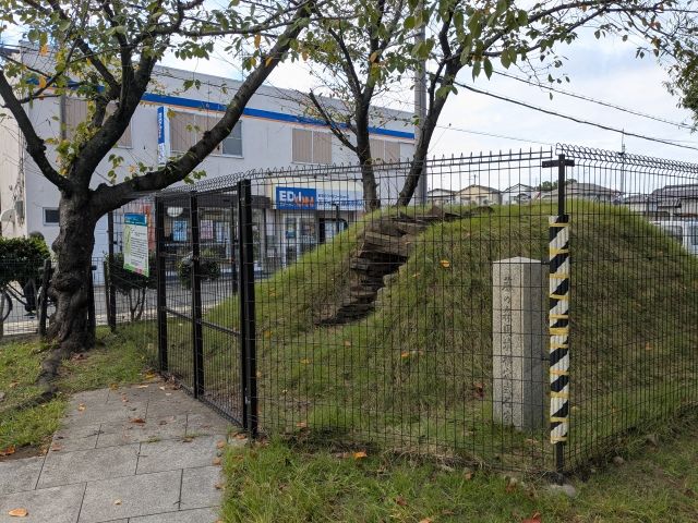 フェンスで囲われているのは移設された藤の森古墳の横穴式石室。応神天皇陵古墳のそばにあった、直径22mの円墳。小さな石が積み重なった石室はすぐに崩れてしまいそうですが、こんなにきれいに移設できるのですね。