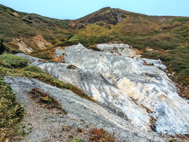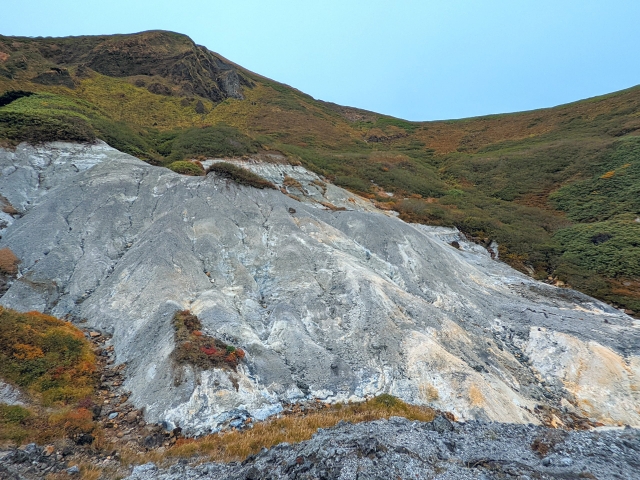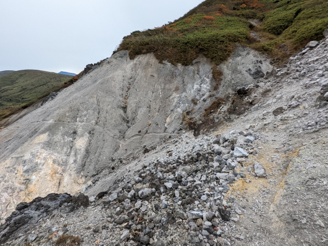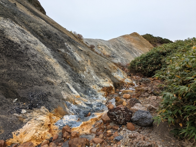 多数の登山コースがある秋田駒ヶ岳。あまり人が通らなくなった「旧道コース」には、かつての鉱山跡が広がっており、当時の面影とダイナミックな光景を楽しむことができます。今回は阿弥陀池から八合目駐車場までの帰り道にこちらのコースを歩いてみることにしました!