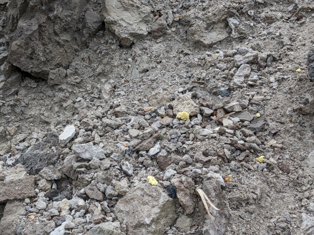 地面をよく見ると、吐き捨てられたガムのような黄色い色の塊が落ちています。これって硫黄ですよね?