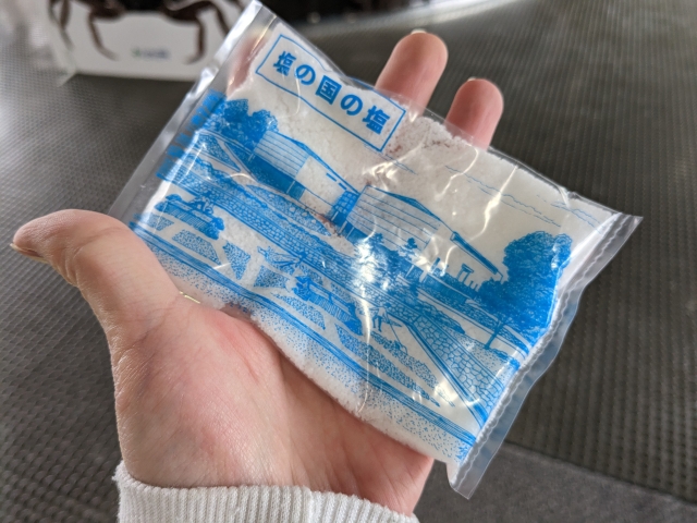 なお、入館時にもらえる塩も、ここで造られたものであるそうです!さらにこの塩の国では、流下式塩田で採取したかん水を煮詰めてつくる「塩づくり体験」も行っているそう。お時間がある方、お子様連れの方は挑戦してみてはいかがでしょうか。