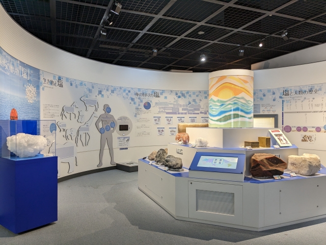 この博物館のメインテーマのひとつが「塩」。館内の一角では、塩と人類の歴史や塩の科学、世界の岩塩やソルトアートなどが展示されています。