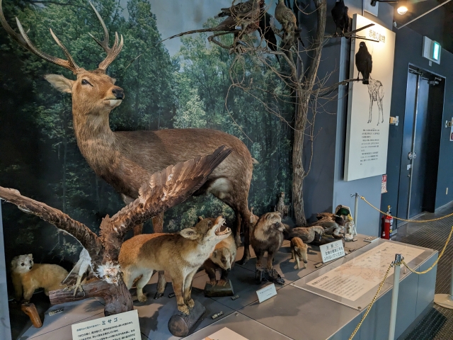 展示室では幅広く自然について紹介されています。ニホンジカ、ヤマドリ、ミサゴなど赤穂の動物の剥製も勢ぞろい。