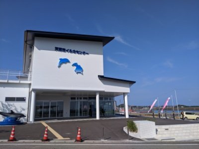 受付を済ませた後は、道路を挟んで向かい側の天草市イルカセンターへ。ここはおみやげや物産品のショップも入った総合案内所。2階には海鮮メニューなどがそろうレストランもあります。