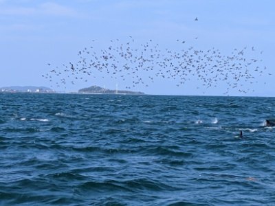 イルカではないのですが、おびただしい数の海鳥の群れも発見!
