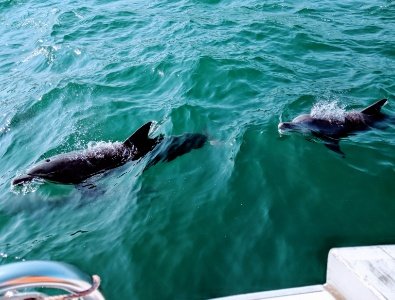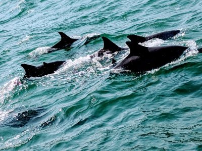 イルカは野生の生き物。会えるかどきどきしてきました。そんな不安な気持ちをかき消すように、すぐにイルカが現れます!
