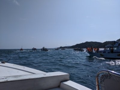 本日は全部で11隻と船がたくさん出ています。様々な形の船が一斉に同じポイントへ向かっていく感じは、まるで船団に加わったようでなんだかわくわくします。多いときは20隻以上集まるそうです。