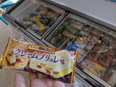 今日は暑い日だったので、アイスにしよう!選んだのは「大人のミルクック クレームブリュレ味」。見たことないアイスだなーと思って販売元を見ると、九州ではお馴染みのアイス・ブラックモンブランでおなじみの竹下製菓でした。ちょっぴりご当地感あります。