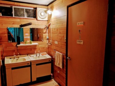 洗面所は2つあり、ドライヤーも完備されてます。お湯も出るので、冬でも安心です。